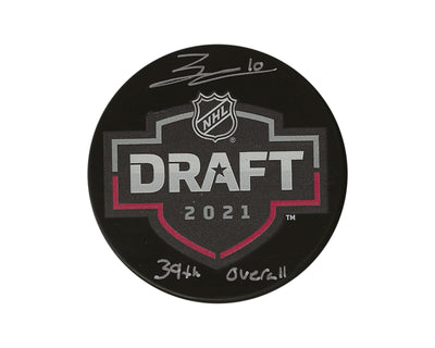 Zack Ostapchuk Autographed 2021 NHL Draft Puck Inscribed "39th Overall"